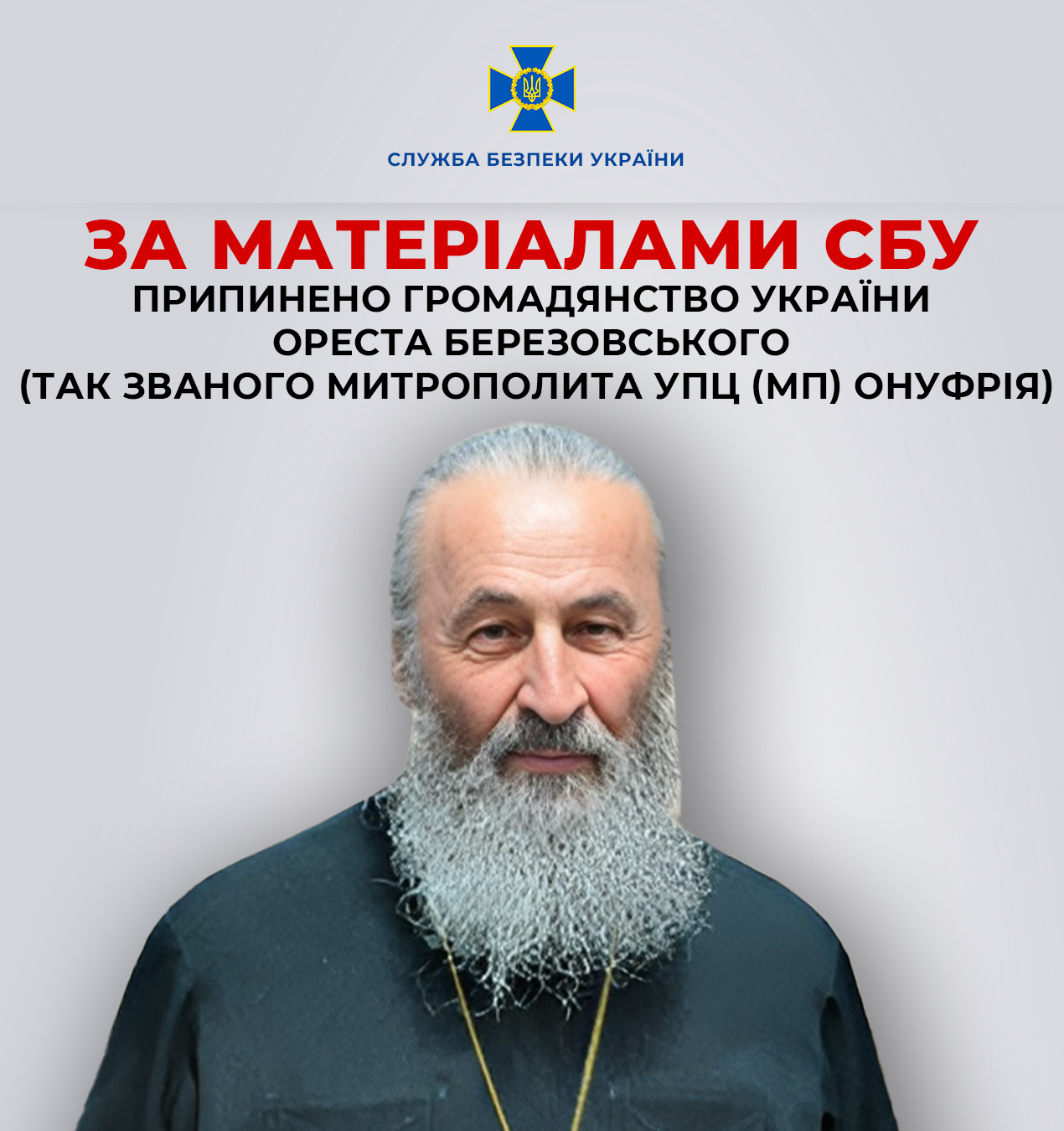 Митрополиту Української православної церкви Московського патріархату Онуфрію (Орест Березовський) припинено громадянство України.