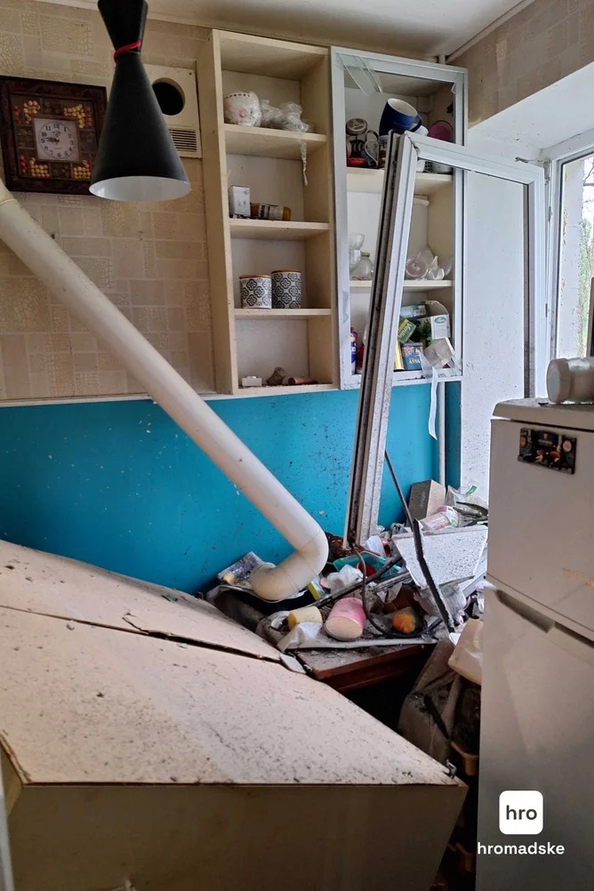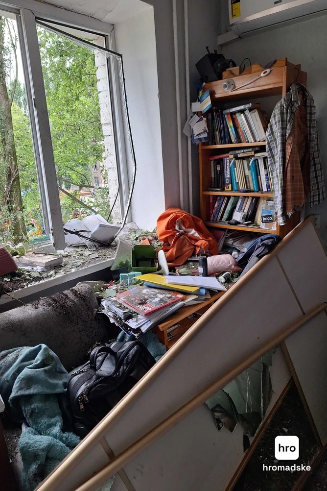 “Потім уже, коли трохи втихомирилось, коли дронів кілька штук залишилось, пішли спати. Прокинулися від гучного вибуху. Це було десь о 4:40. У нас вилетіло вікно навпроти вхідних дверей”, – каже Наталія.