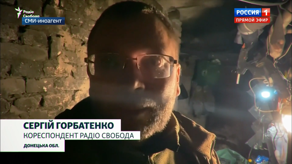 Російський державний телеканал “Россия 1” використав у своєму ефірі фрагмент матеріалу українського кореспондента проєкту Радіо Свобода “Донбас Реалії” Сергія Горбатенка. Відео промаркували як “ЗМІ-іноагент”.