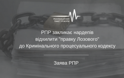 Коаліція громадських організацій “Реанімаційний Пакет Реформ” закликає народних депутатів не ухвалювати законопроект №6232 з урахуванням правки №109 депутата Андрія Лозового до Кримінального процесуального кодексу України, яка може спричинити закриття “майданівських” справ та повернути до життя норми КПК 1960 року. Про це йдеться у заяві коаліції громадських організацій РПР.