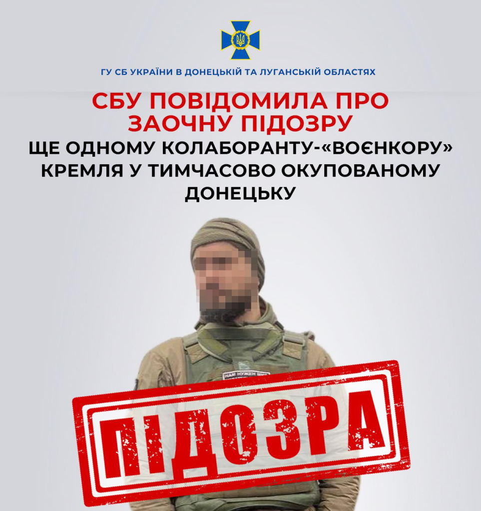 Служба безпеки України повідомила про заочну підозру пропагандисту з Донецька, який співпрацює з низкою російських ресурсів – Russia Today, “Соловьев live”, “Репортёры”. Про це повідомляють ГУ СБУ в Донецькій та Луганській областях на Facebook-сторінці та Донецька обласна прокуратура на своєму сайті.