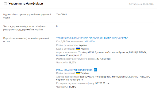 Водночас, за даними платформи YouControl, Наталія Романова досі зазначена як бенефіціарка ТОВ “Телерадіокомпанія “Регіональна телевізійна система”, яке раніше функціонувало на території Луганської обласної державної телерадіокомпанії та було підконтрольним Родіону Мірошнику.