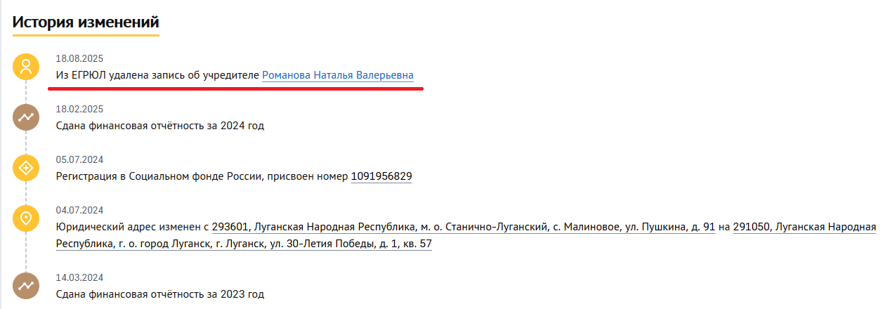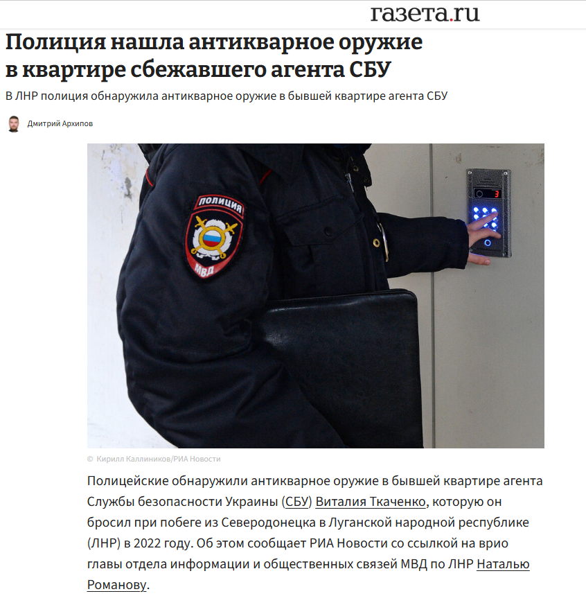Перші згадки про Наталію Романову в ролі представниці так званого “МВД ЛНР” почали з’являтися приблизно в жовтні 2025 року. Тоді російські ресурси з посиланням на неї поширювали повідомлення про нібито виявлення раритетної зброї у квартирі співробітника Служби безпеки України.