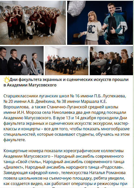Скриншот з телеграм-каналу “Академия Матусовского”