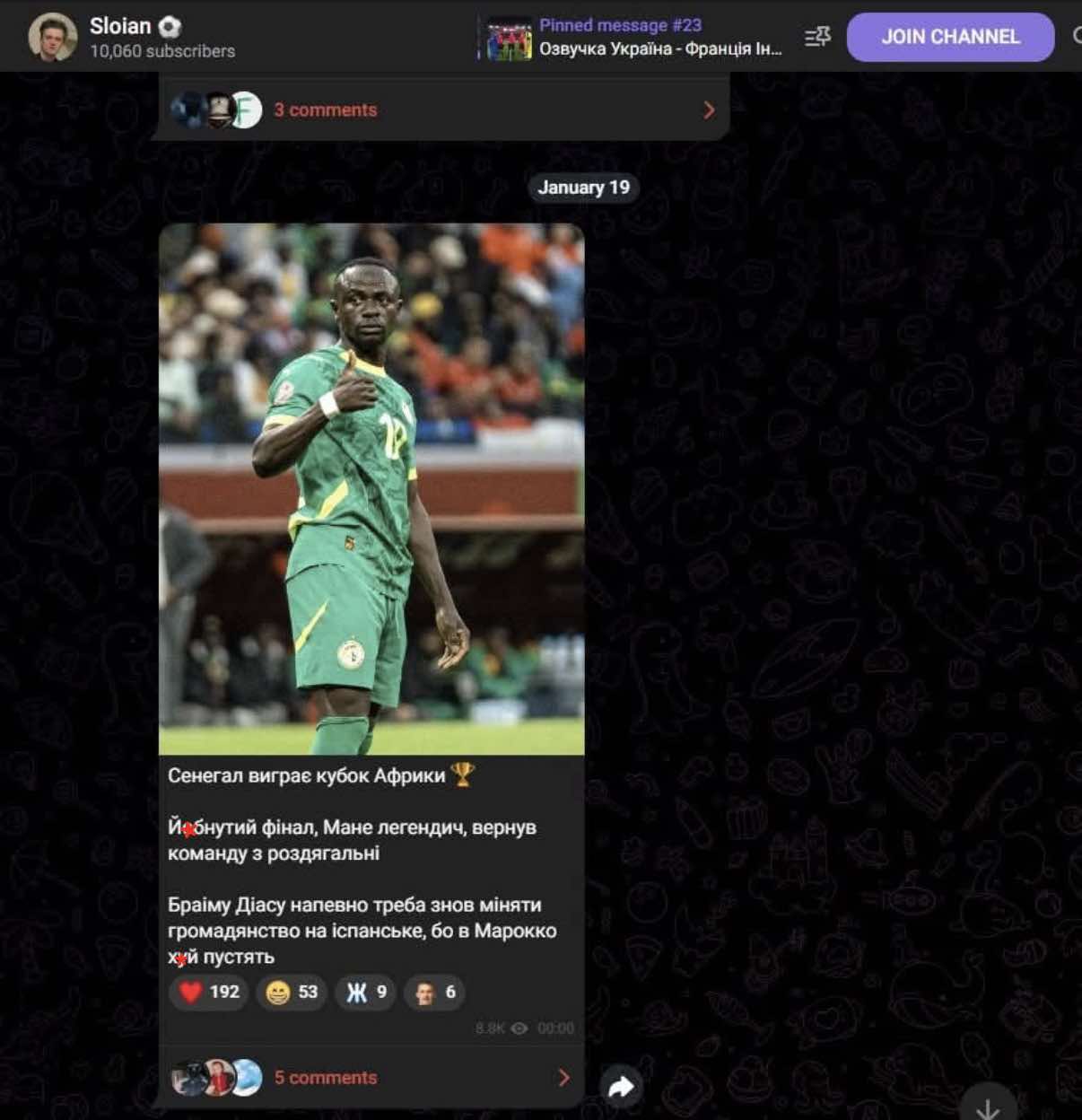 Як зазначила представниця ІМІ, телеграм-канал створили 20 жовтня 2023 року. Станом на 3 лютого 2026 року він має понад 10 тисяч підписників. Тут публікують дописи про футбол, однак іноді є й про інші види спорту. Також тут можна побачити марковану рекламу казино, а ще в самих публікаціях часто трапляється нецензурна лексика.
