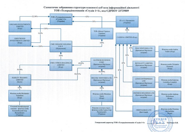 Як зазначається, ТОВ телерадіокомпанія Студія "1+1" належить компаніям, зареєстрованим на Кіпрі, в Белізі і Британських Віргінських островах.
