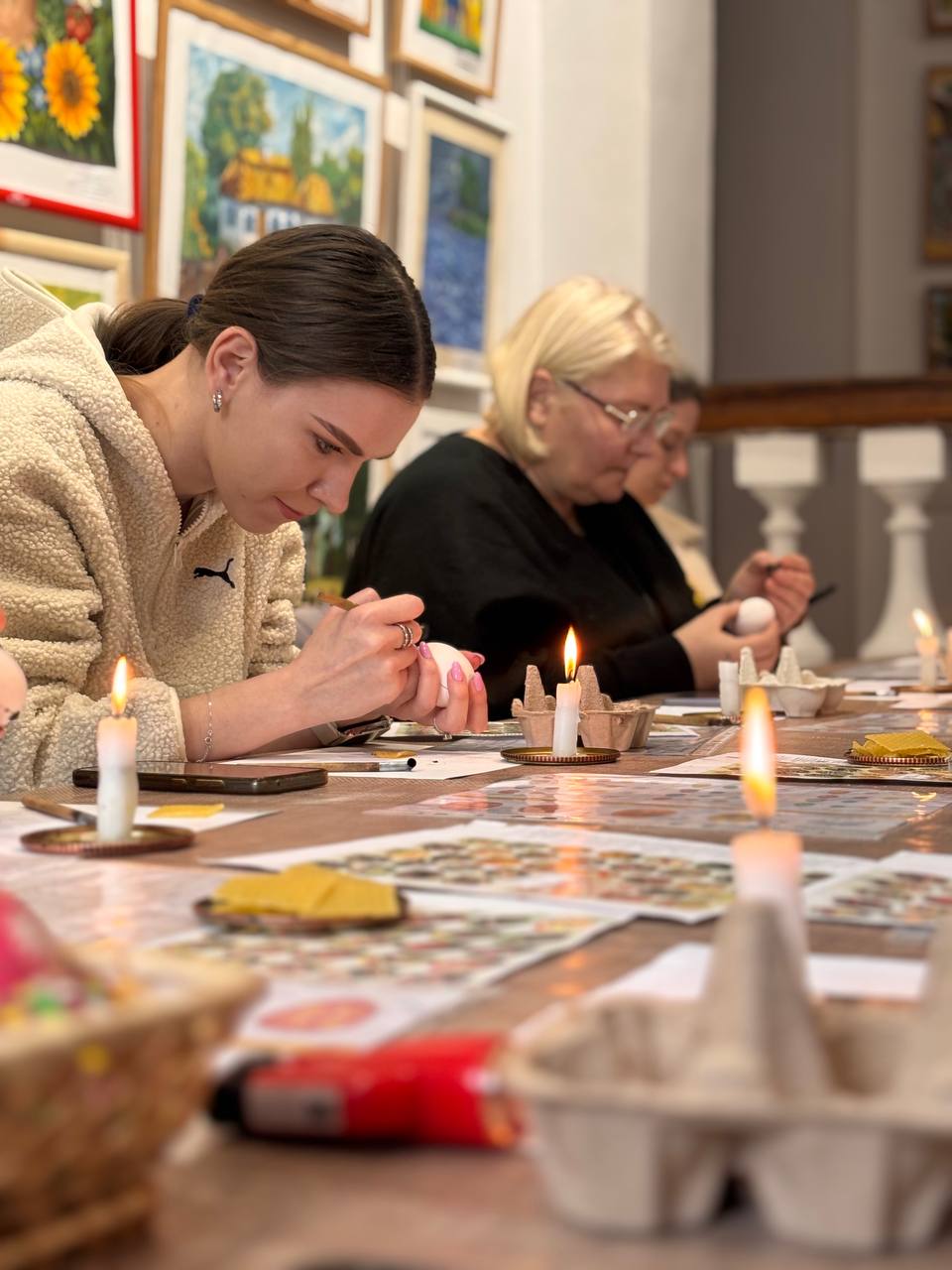 Під час майстер-класу разом зі співробітницею музею Анастасією Лисенко учасниці створили власні писанки та дізнавалися про символіку й значення орнаментів.