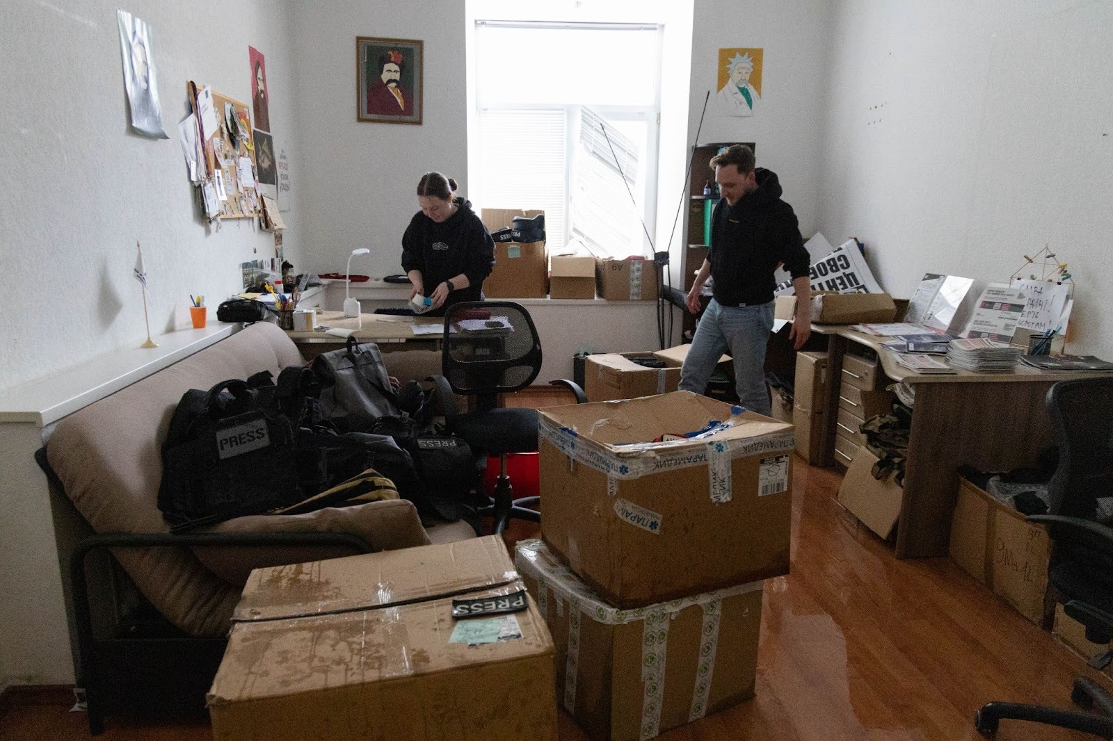 Захисне та енергетичне спорядження постраждало через затоплення офісу ІМІ. Фото: Ганна Чабарай