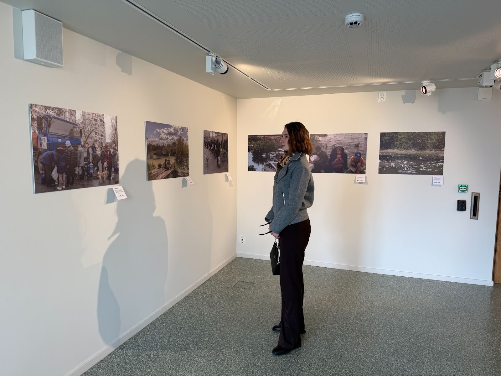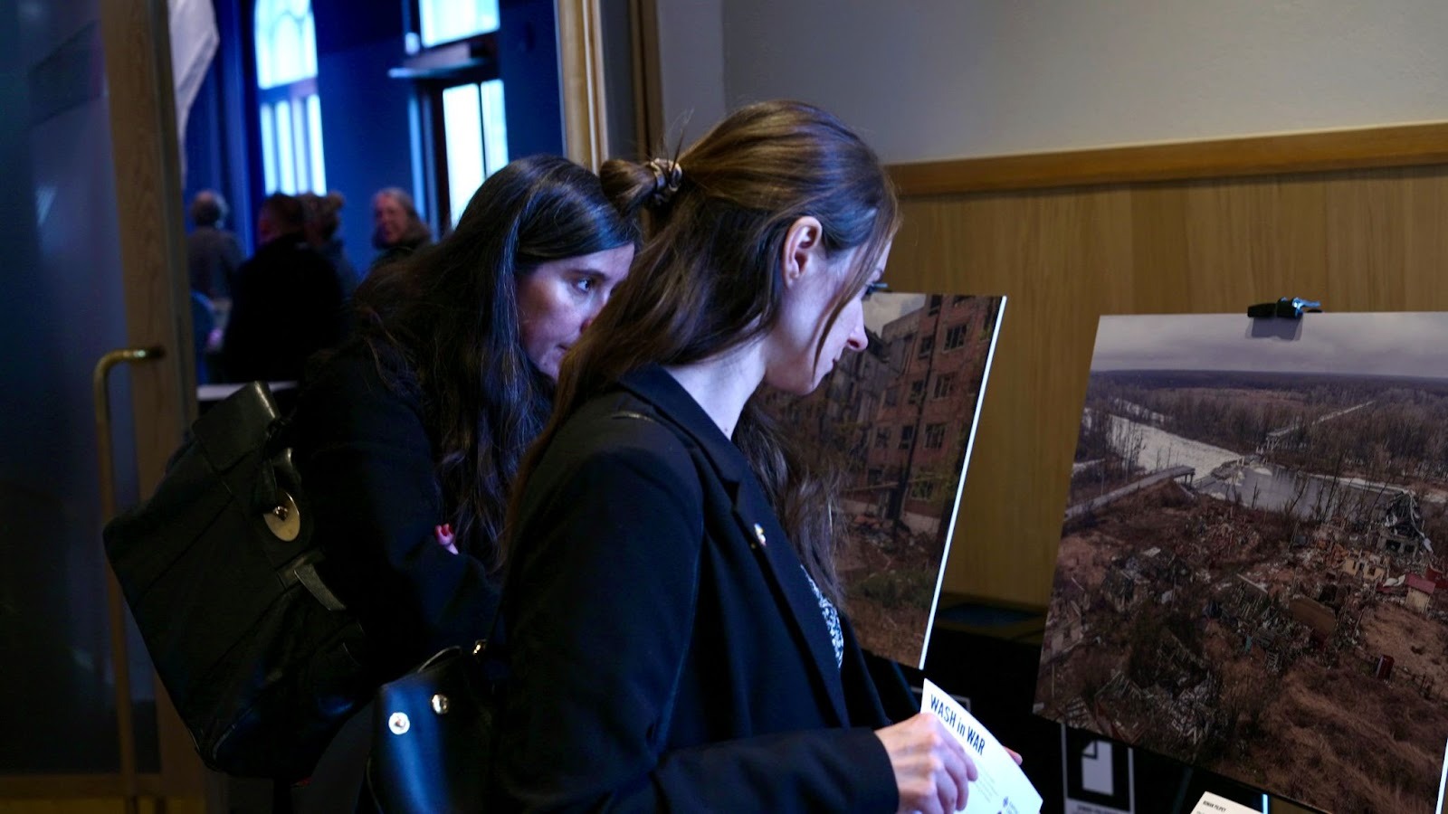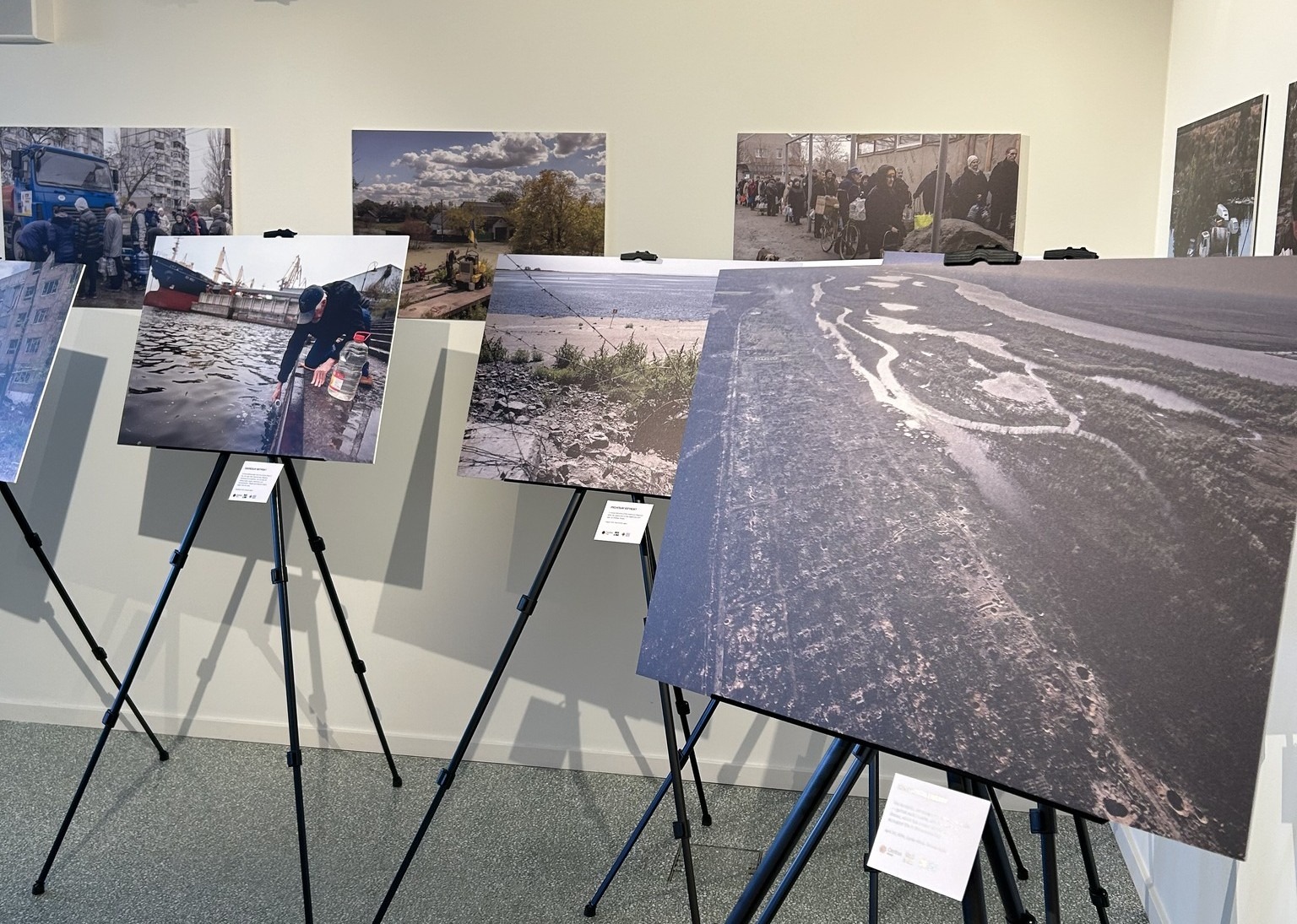 Виставка світлин про російські атаки на водну інфраструктуру України в Нобелівському центрі миру, Осло. Фото: Карітас України