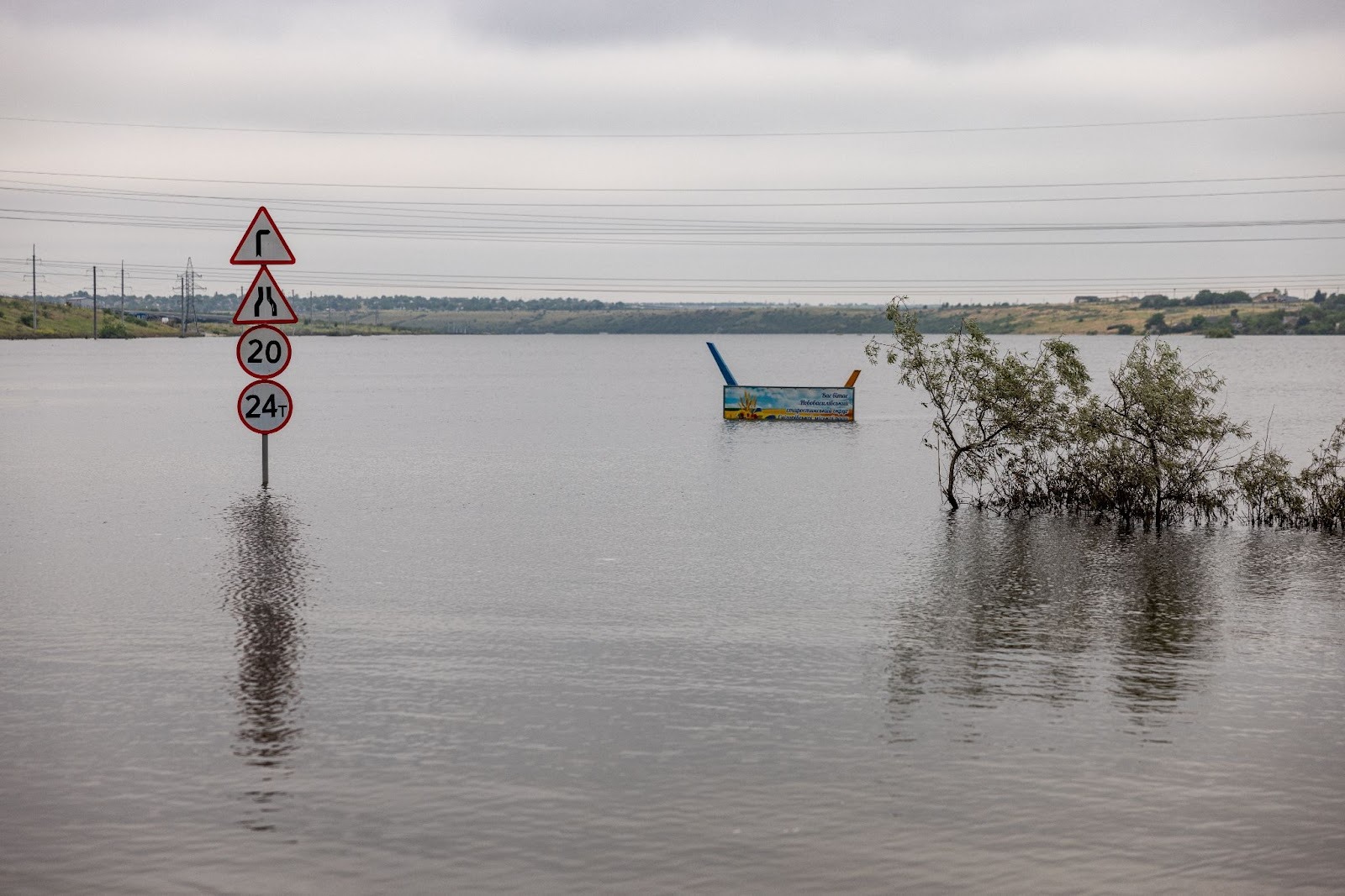 Затоплена внаслідок підриву Каховської ГЕС дорога біля села Нововасилівка на Миколаївщині, червень 2023 року. Фото: Стас Козлюк