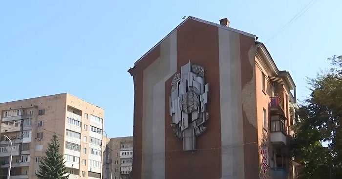 На стіні будинку, де донедавна висіло панно, яке, за словами посадовців Рівнеради, не має ознак радянської символіки, планують створити мурал пам’яті Тараса Давидюка. Фото: ОГО