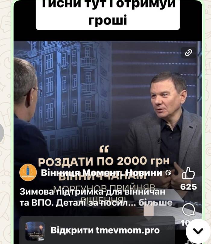 У соцмережах з’явилися дописи із закликом “тисни тут і отримай гроші від Вінницької міської ради”. Користувачі скаржаться, що після переходу за посиланням обіцяних коштів не отримують. Про це повідомляє вінницьке видання “33 канал”.