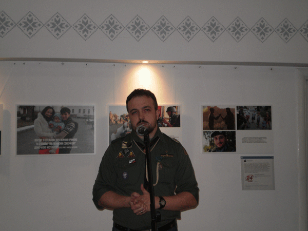 Автор світлин – пластун, фотокореспондент, боєць батальйону «Айдар» Віктор Гурняк, який загинув у жовтні 2014 р. на Луганщині, вивозячи поранених вояків АТО з місця бою. Останні, зроблені ним знімки, знайшли на його фотоапараті вже після смерті. Ними завершується виставка, яка, відповідно до подій, розташована у хронологічному порядку.