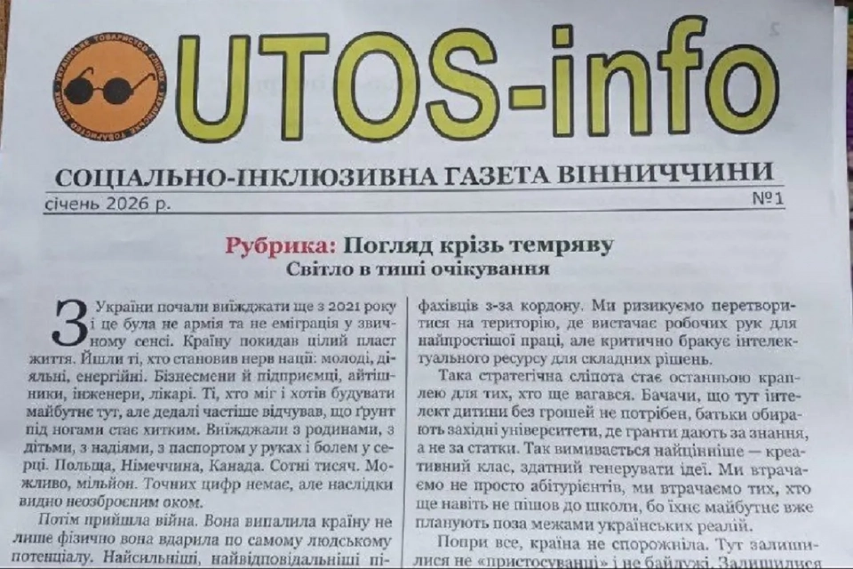 У Вінниці підприємство незрячих започаткувало соціально-інклюзивну газету UTOS-info. Про це повідомляє видання “20 хвилин Вінниця”.