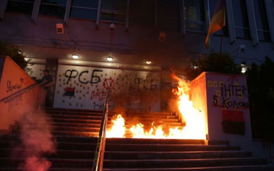 Під будівлю “Інтера” увечері 9 травня кинули “коктейль Молотова”