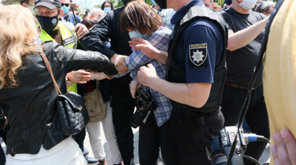 Перейти до В Одесі 9 травня напали на журналістку, що допомагала поліції зняти з жінки георгіївську стрічку
