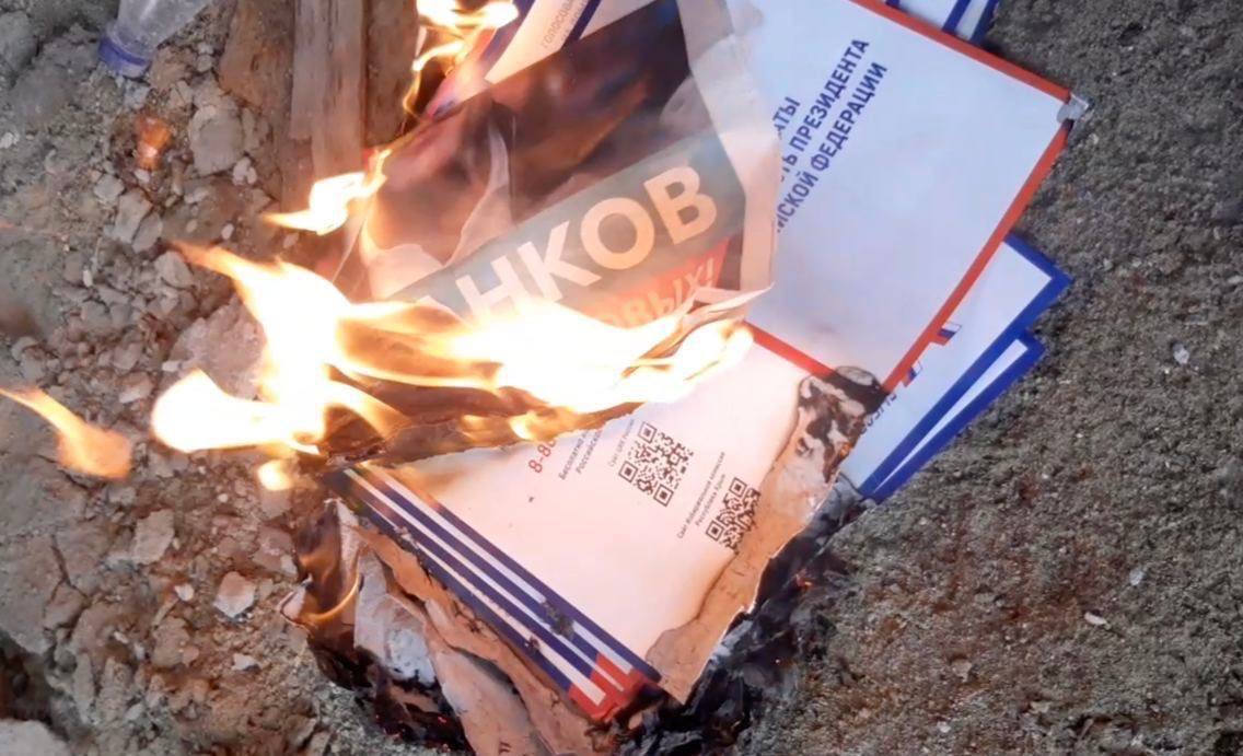 Рух “Жовта стрічка”: Жителі Сімферополя спалюють передвиборчу агітацію окупантів