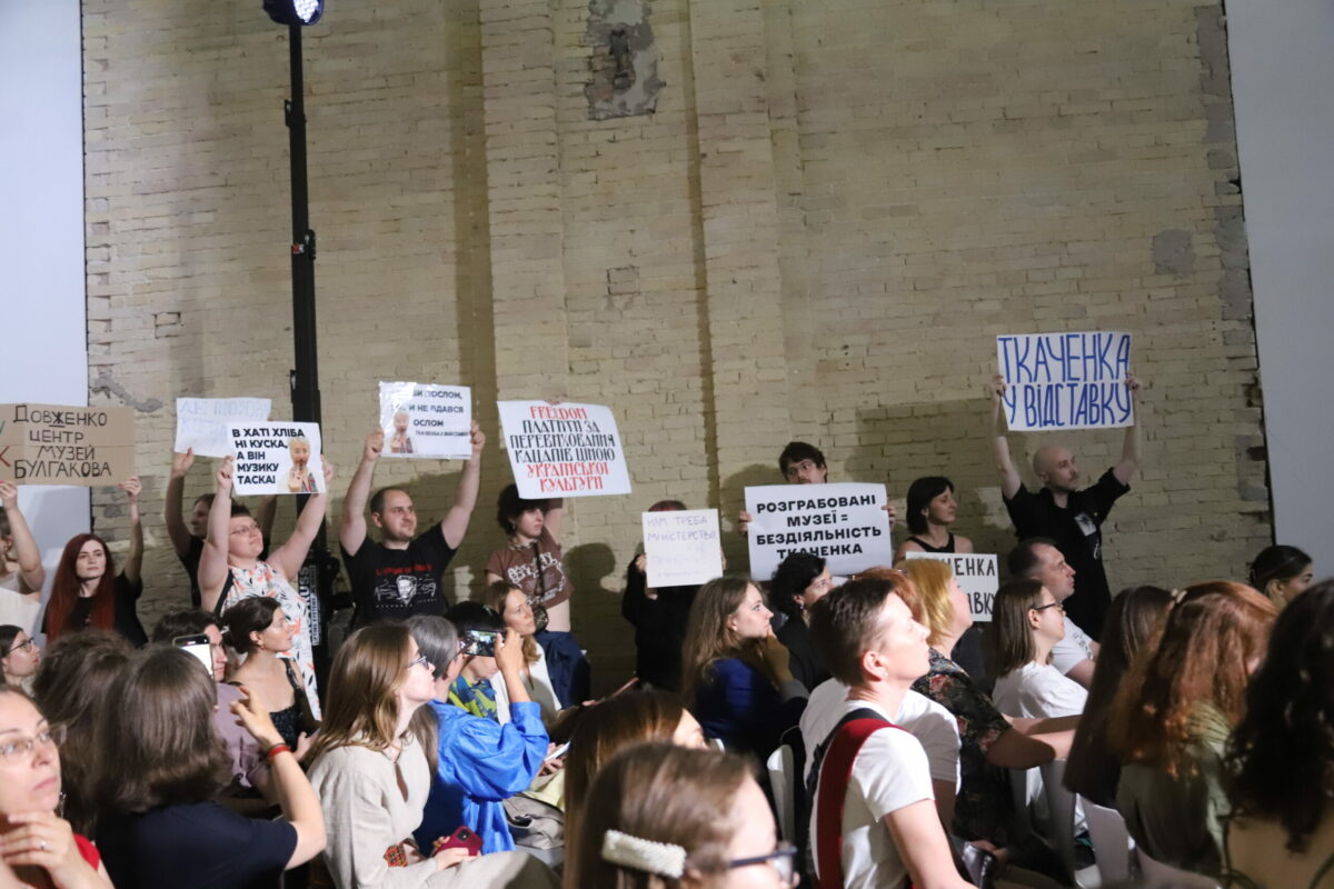 На Книжковому арсеналі активісти розгорнули плакати із закликом до відставки Ткаченка