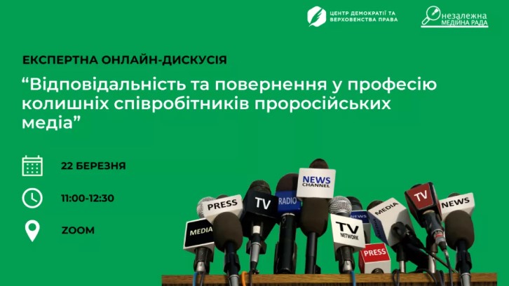 До 21 березня – реєстрація на онлайн-дискусію “Відповідальність та повернення у професію колишніх співробітників проросійських медіа”