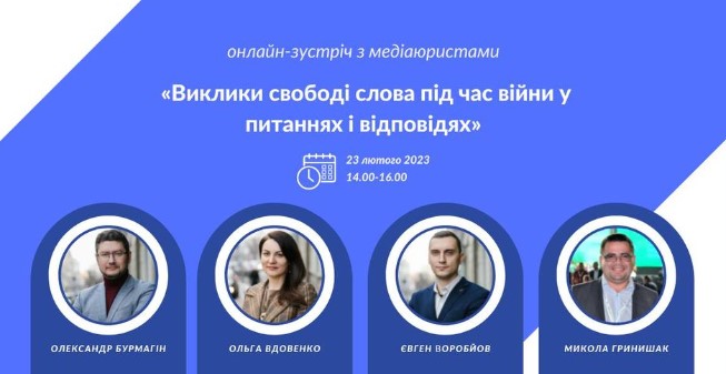 23 лютого – онлайн-зустріч з медіаюристами про виклики свободі слова під час війни