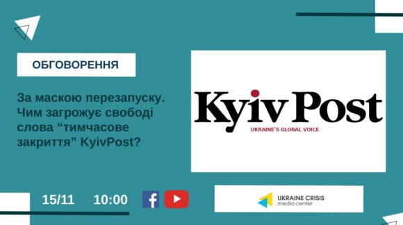 15 листопада – обговорення “За маскою перезапуску. Чим загрожує свободі слова “тимчасове закриття” KyivPost?”