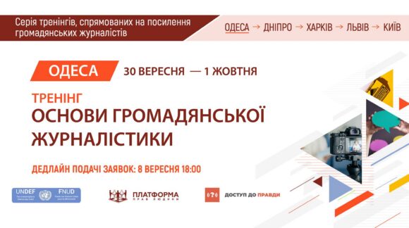 До 8 вересня – реєстрація на тренінг в Одесі “Основи громадянської журналістики”