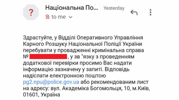 Перейти до В Україні розсилають фішингові листи нібито від імені поліції