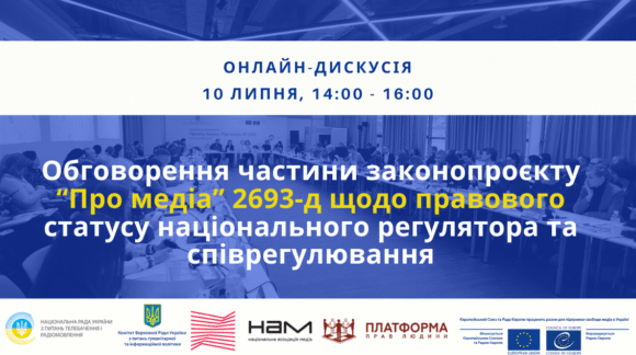 10 липня – обговорення законопроєкту “Про медіа” щодо правового статусу нацрегулятора та співрегулювання