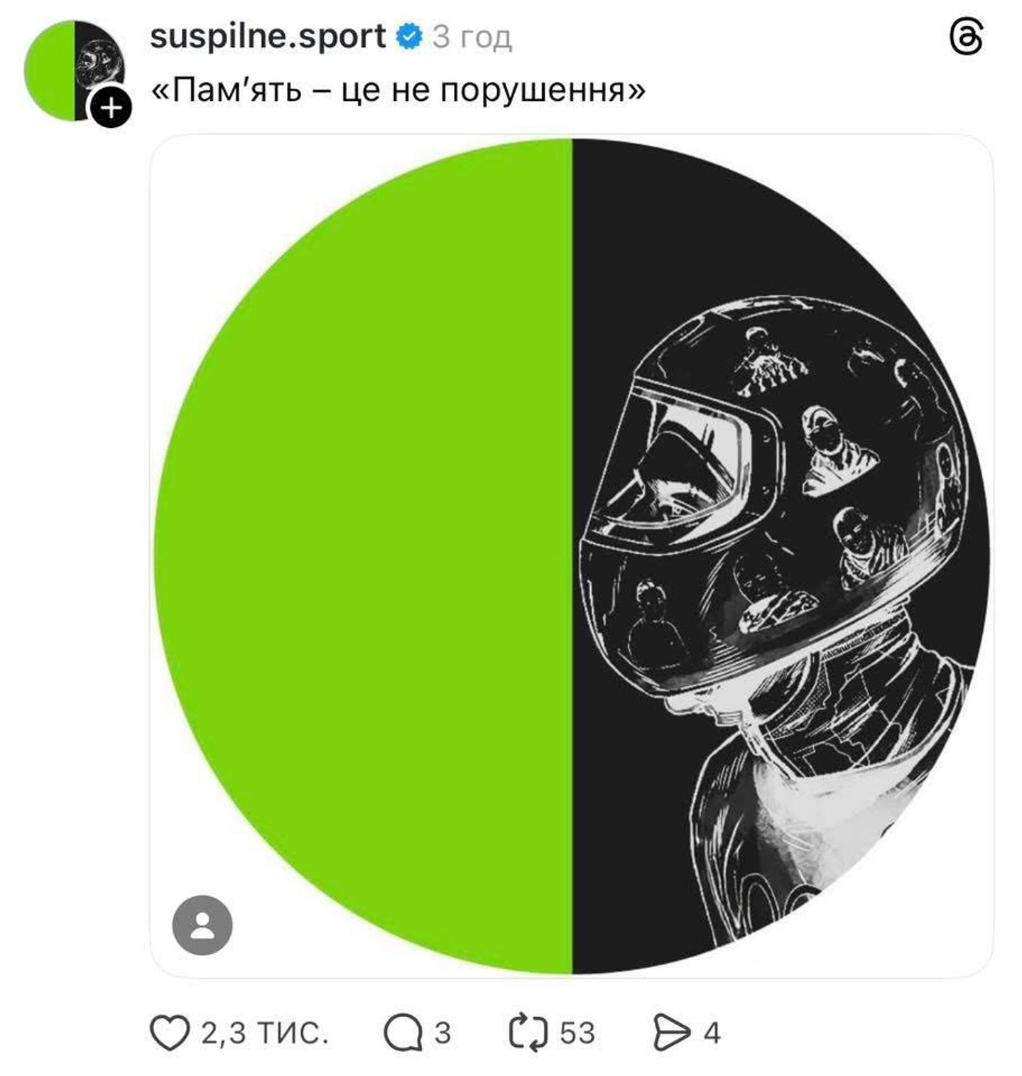 “Суспільне Спорт” також змінило головні фото у своїх соцмережах на портрет спортсмена та повідомило про свою позицію на сайті.