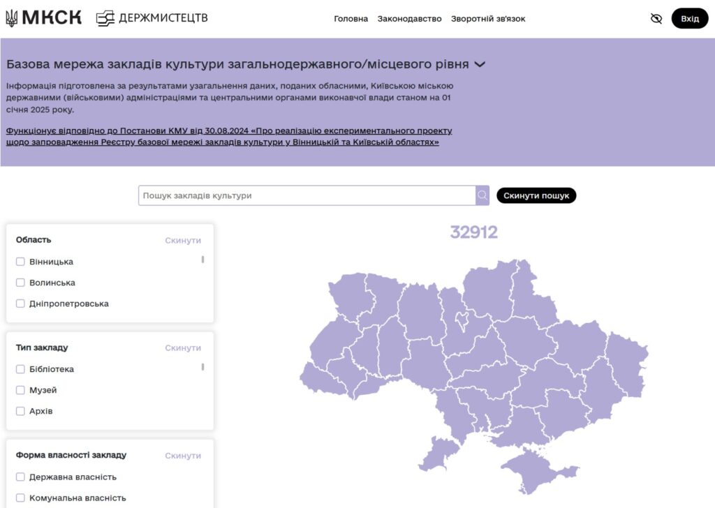 Міністерство культури та стратегічних комунікацій України (МКСК) запустило електронний Реєстр базової мережі закладів культури, яка вперше об’єднує всі заклади культури в державі в єдину електронну систему.