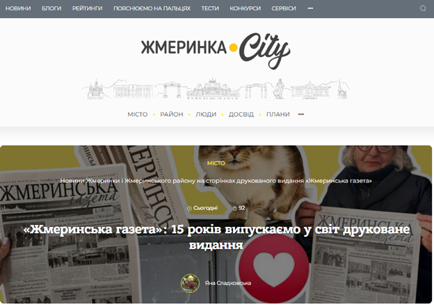 - Жмеринка.City (ПП “Редакція “Жмеринська газета”) поповнило мережу локальних онлайн-медіа;