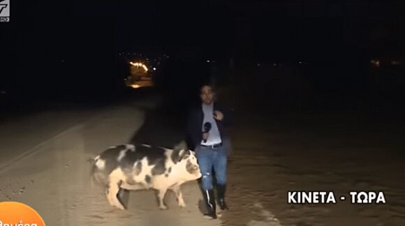 У Греції журналіста під час прямого ефіру атакувала свиня