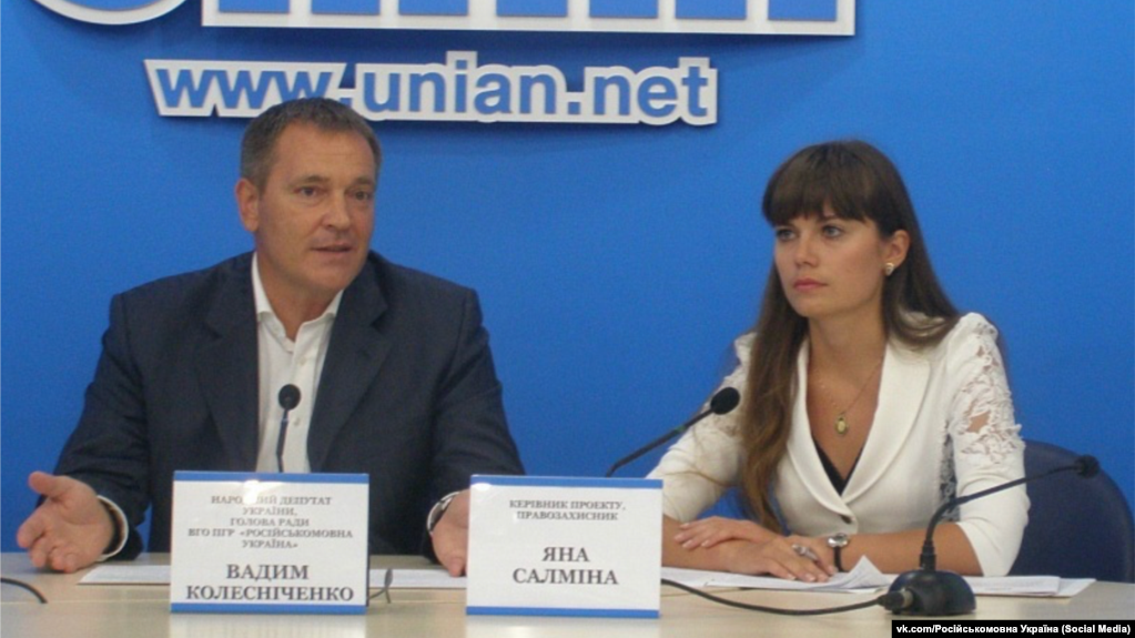 - “Російськомовної України”. Цю організацію після втечі з України колишнього нардепа Вадима Колесніченка очолив чоловік Салміної Сергій Шостак.