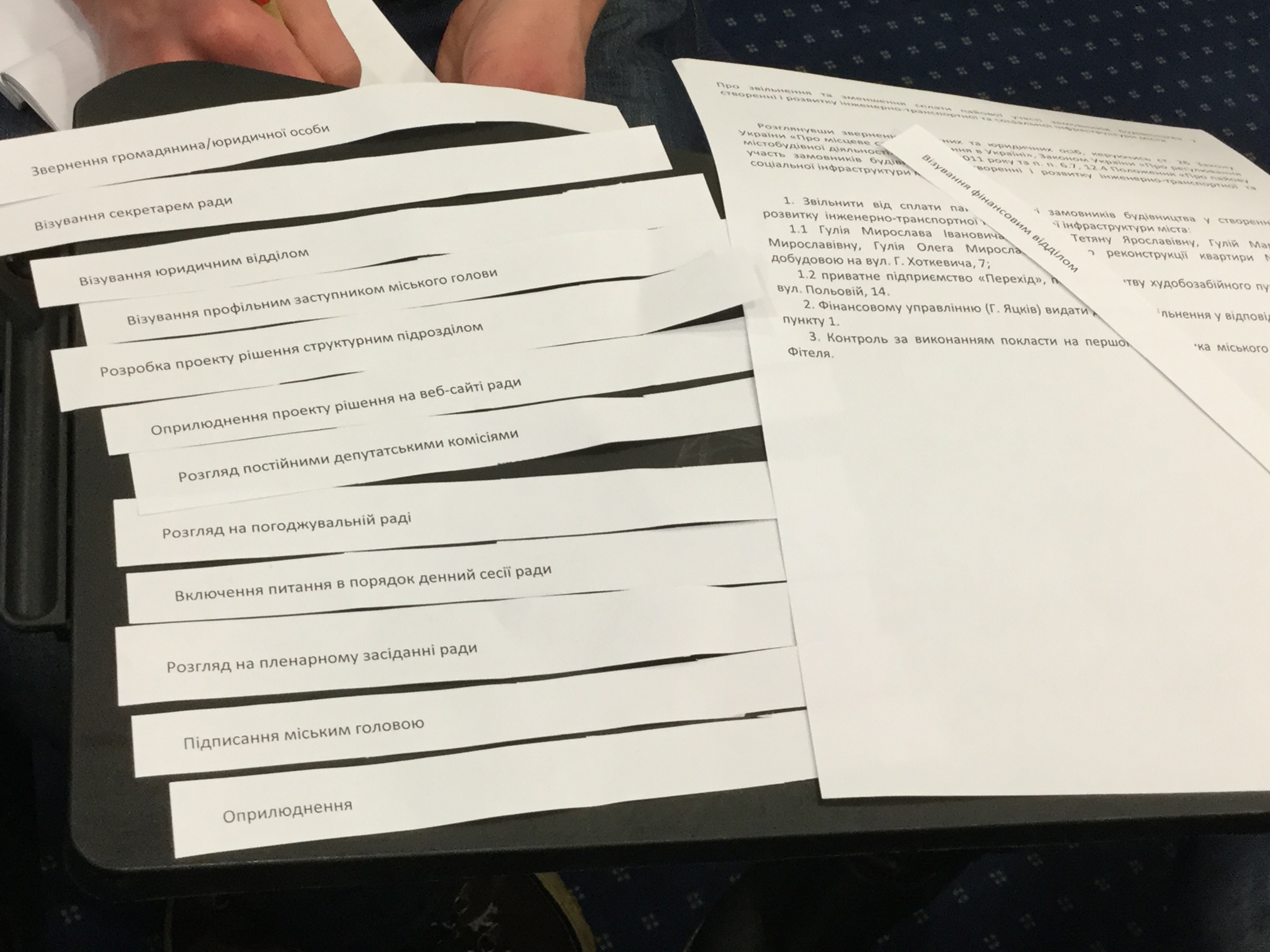 Учасники виконали практичне завдання, відстеживши, який шлях проходить рішення від ідеї/запиту до вступу в силу.