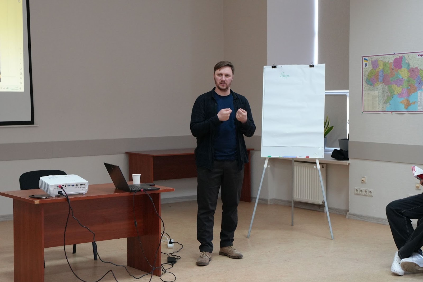Дмитро Клименко під час тренінгу “Журналістські стандарти та етика” в Медіабазі Житомир. Фото: Медіабаза Житомир