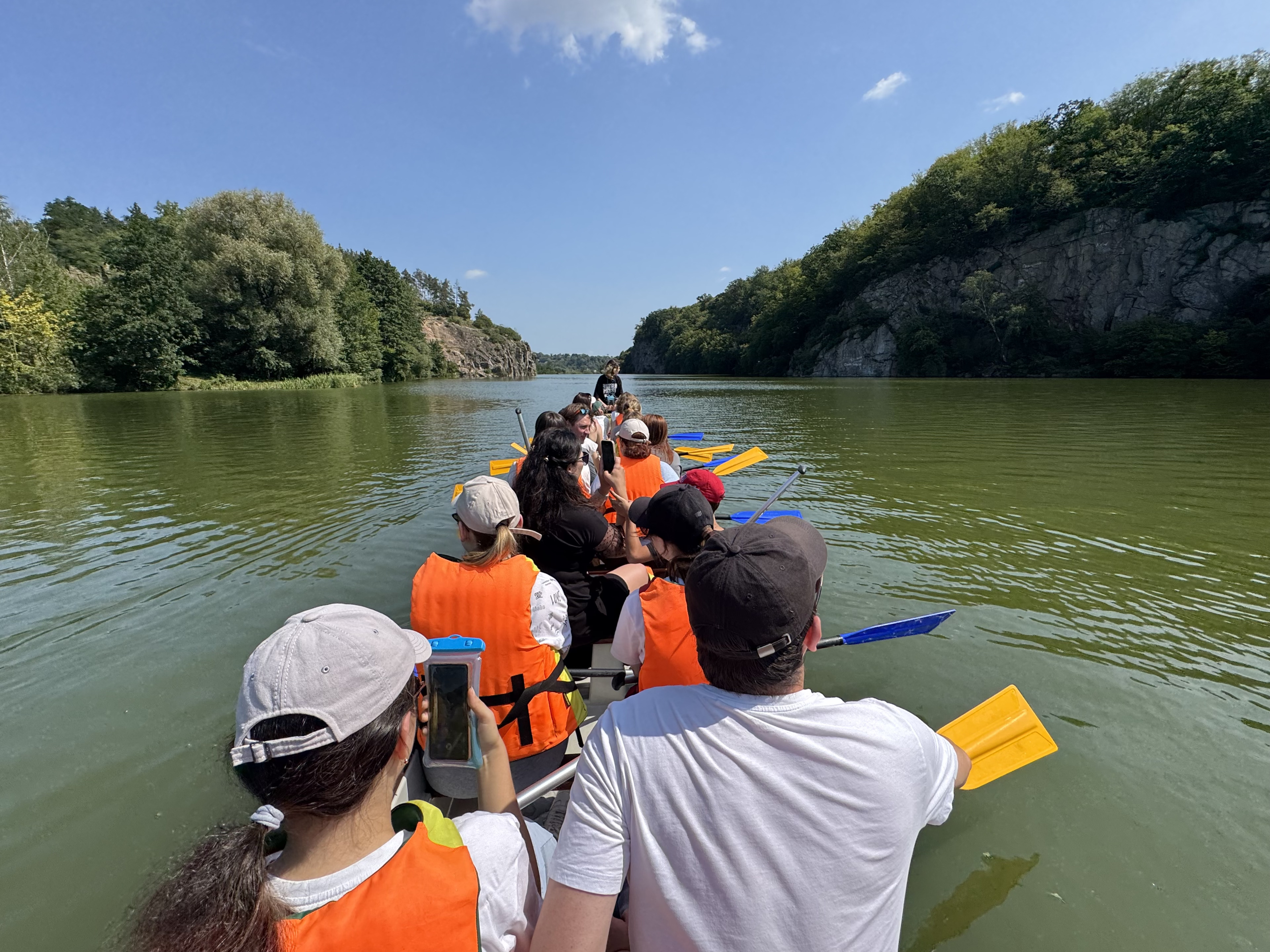 У Житомирі відбувся тімбілдинговий захід для місцевих медійників: 20 журналістів вийшли на річку Тетерів, щоб спробувати свої сили у веслуванні на човнах “Дракон”. Для більшості з них це стало першим досвідом у командному веслуванні.