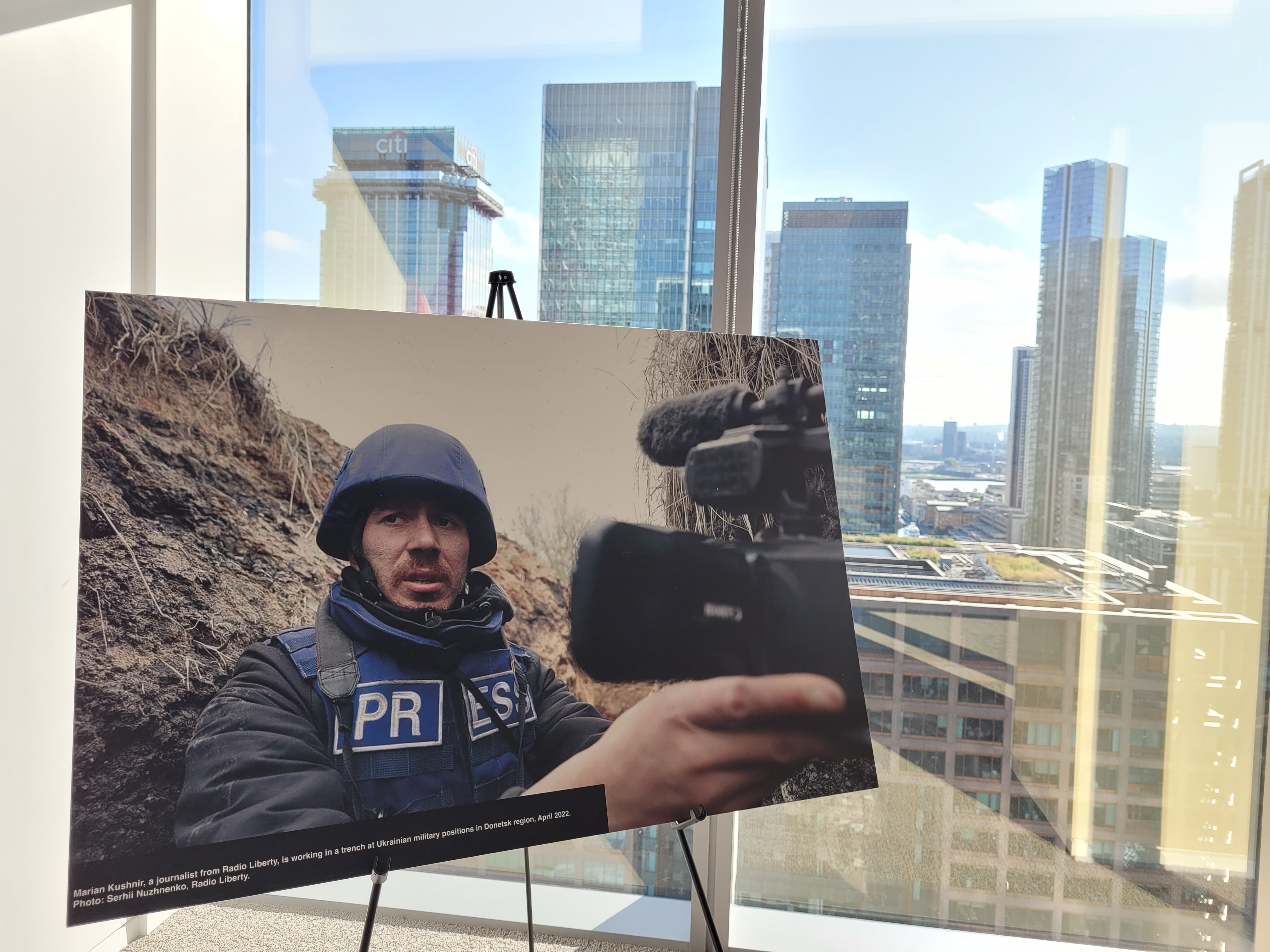 “Для нас важливо показувати міжнародним партнерам, у яких умовах працюють українські медійники і медійниці. Тому виставка з їхніми світлинами органічно доповнила захід з нагоди запуску фонду підтримки українських медіа. Ми мали нагоду розповісти гостям про героїв цих світлин, їхню щоденну роботу, адже всі вони є нашими друзями й колегами. Серед них і відомий фотожурналіст Макс Левін, який висвітлював російсько-українську війну з 2014 року і якого в березні 2022 року вбили росіяни. Ця виставка – нагадування, що журналістику роблять люди. Ми хочемо, щоб світ допоміг нам захистити цих людей – фізично і фінансово, збудувати основу, на якій зможуть безпечно процвітати якісні незалежні медіа”, – зазначила заступниця директорки Інституту масової інформації Ганна Чабарай.