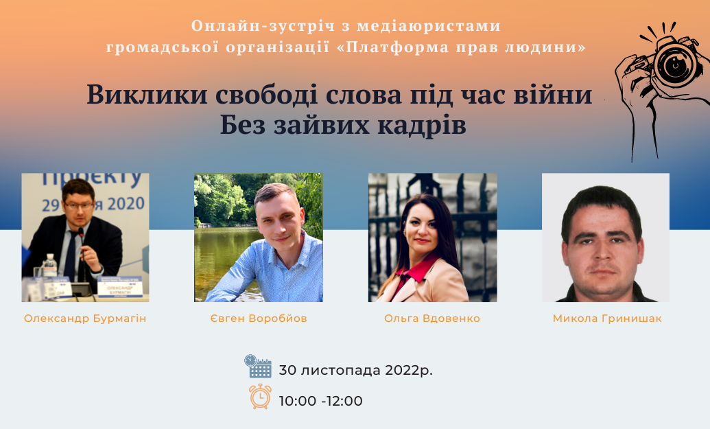 Перейти до 30 листопада – онлайн-зустріч з медіаюристами про правила безпечного знімання