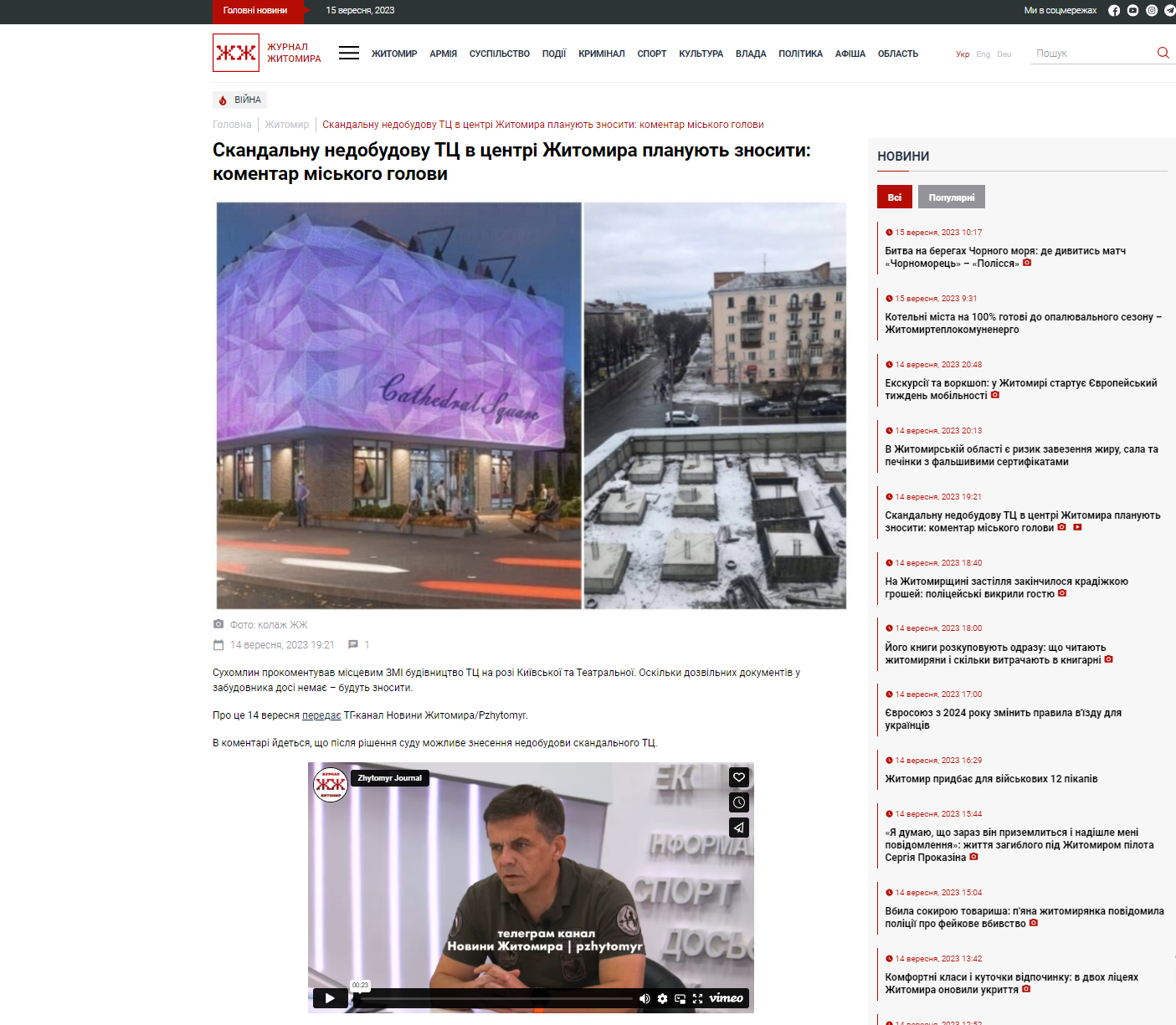 “Regarding the specific situation with complaints from the Zhytomyr.info editors, we share the concerns of our fellow journalists and understand their indignation. In no way did we intend to provoke a conflict. On September 14, our news feed editor saw a post with the video on Telegram. The video had the Telegram channel’s logo. This clip was used for the news on our website and, accordingly, a link to the source was included. On September 15, it became clear that it was a different outlet that was the primary source. So we have made changes to the news report and added a link to that outlet. In our opinion, this is a usual, routine situation”, said the editors of “Zhytomyr Magazine”. They also added that they have their own experience with copyright infringement as well.