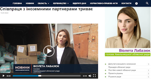 At the same time, according to Maria Turchyn, around the time of her receiving the response referring to the Regional Council’s official website, a local TV channel associated with a relative of the Chairwoman of the Khmelnytsky Regional Council Violeta Labaziuk filmed a story about receiving another batch of humanitarian aid from international partners. The comments in this story were given both by the Chairwoman herself and by other employees of the Regional Council. This story has also been posted on the Khmelnytsky Regional Council official website.
