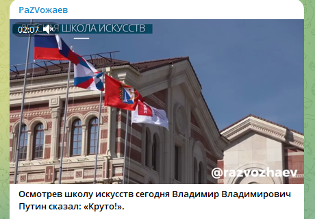Власне, ця школа мистецтв на території історико-археологічного парку “Херсонес Тавричеський” і стала основним об’єктом уваги Путіна під час коротких відвідин Криму. А особами, які його супроводжували, стали Михайло Розважаєв та митрополит Псковський Тихон Шевкунов. Рівень кримського представництва чомусь не підвищили присутністю так званого “прем’єр-міністра уряду Криму” Сергія Аксьонова. Чи був тому причиною поспіх, чи не було метою візиту обговорення або розв’язання якихось проблем тимчасово окупованого півострова, а було метою лише показати, що Путін є, що він ще повносправний і навіть здатен бути за кермом, принаймні в авто? Бо, згідно з дописом Розважаєва в Telegram, результатом візиту до Криму стало те, що російський диктатор сказав: “Круто!” Та й по тому.