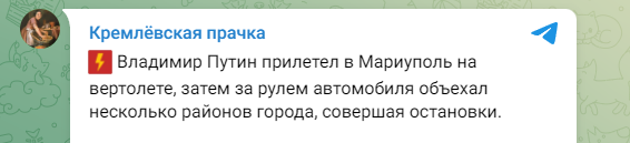 Крім того, Пєсков та частина названих пропагандистських ресурсів вирішили, що важливим буде зауважити, що Путін до Маріуполя прилетів на вертольоті.