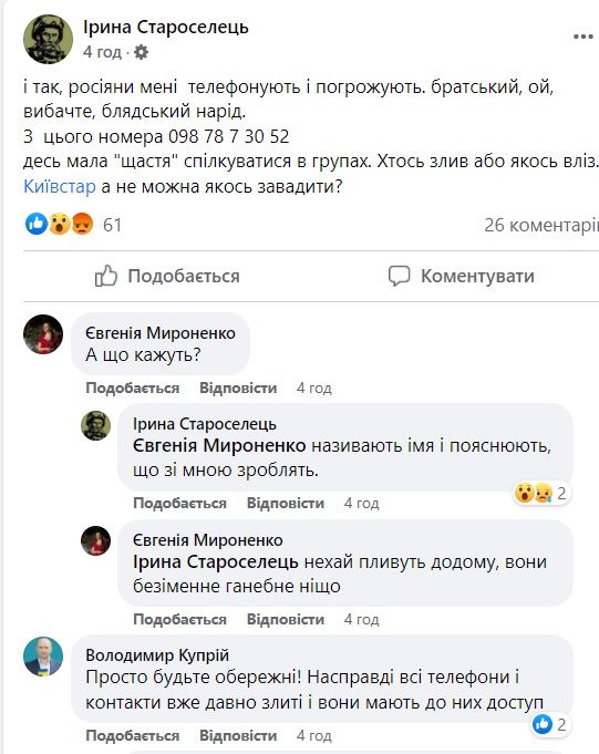 “Росіяни мені телефонують і погрожують. Називають ім’я і пояснюють, що зі мною зроблять”, – розповіла журналістка.